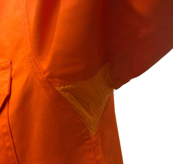 - Breathable Ventilation Panels: Strategically placed mesh ventilation panels along with underarm and curved back ventilation holes enhance airflow, helping you stay cool and comfortable throughout your workday. These breathable zones promote optimal air circulation without sacrificing the shirt’s durability.